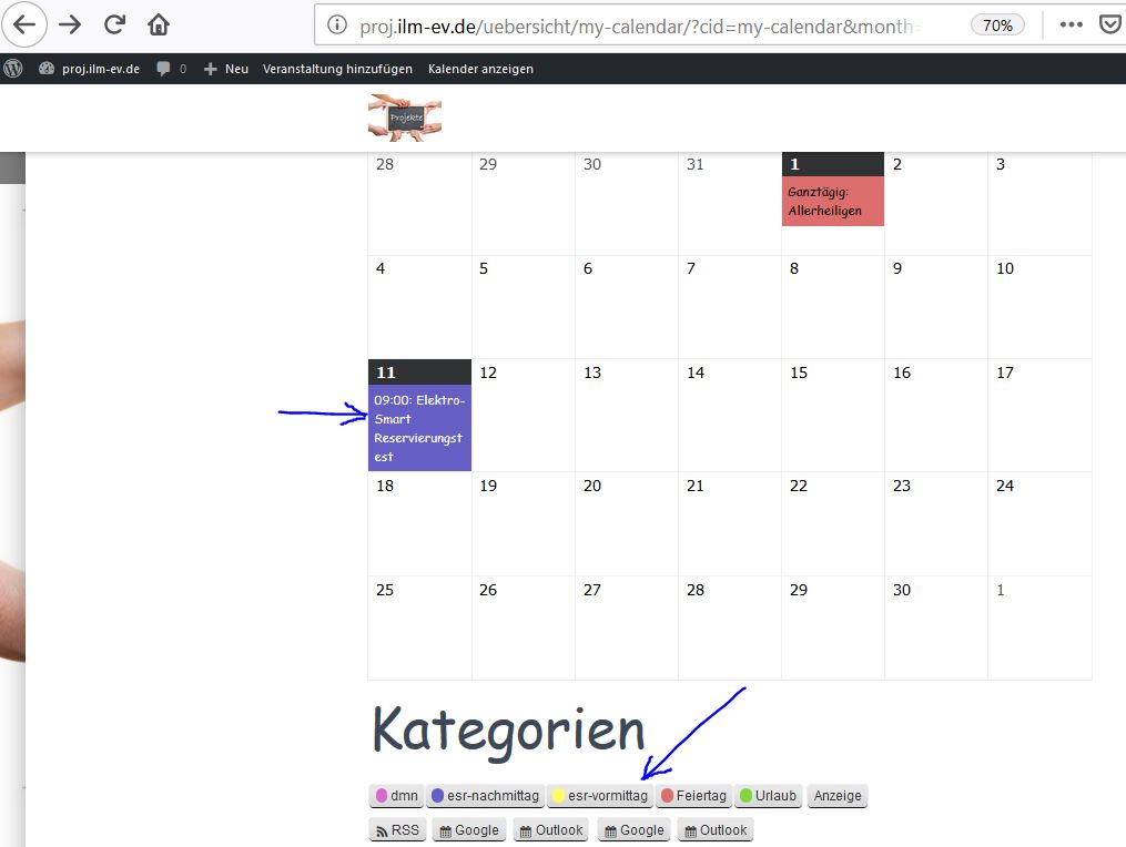 Nun erscheint der Veranstaltung in der richtigen Farbe und kann durch den Knöpfen unter Kategorien gefiltert werden.